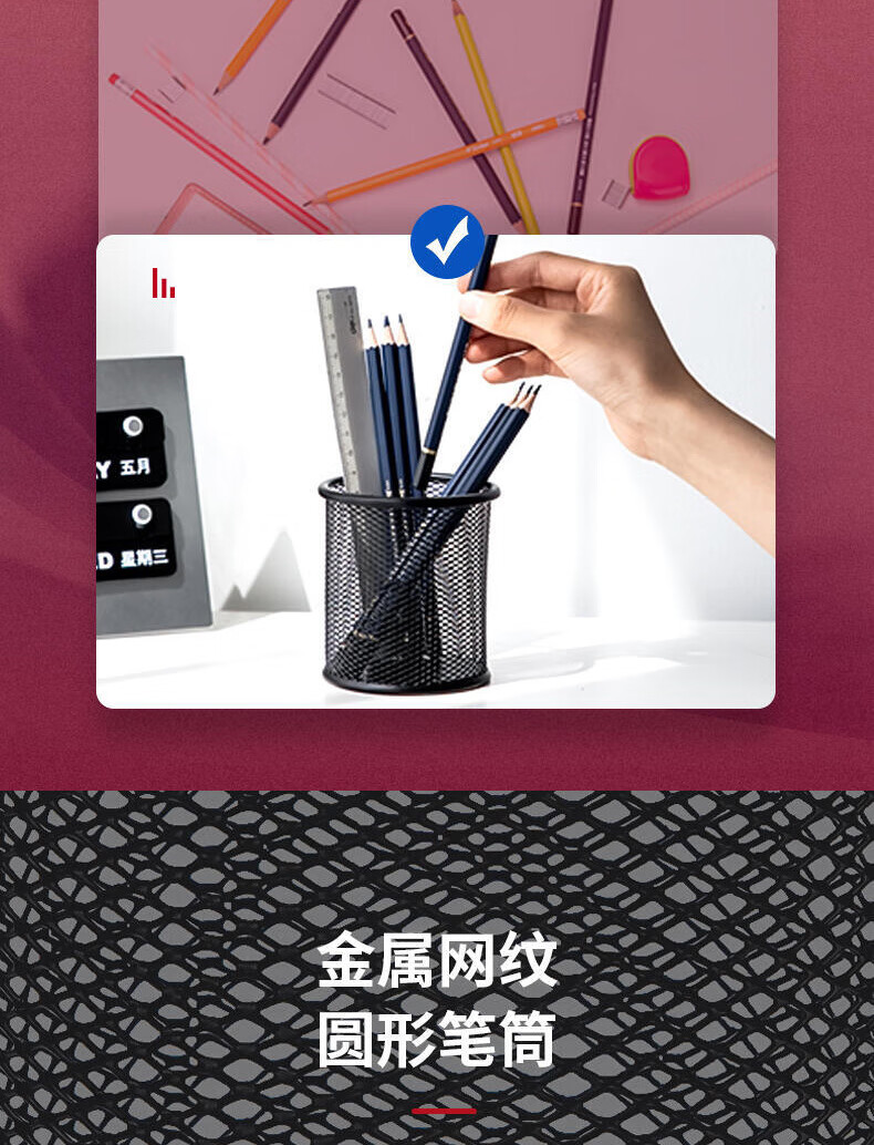 得力/deli 笔筒 9147 金属网纹圆形笔筒简约创意桌面收纳盒笔插笔架笔座 黑色-三层+2格笔插