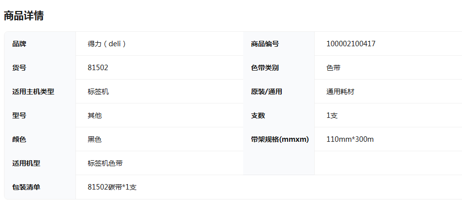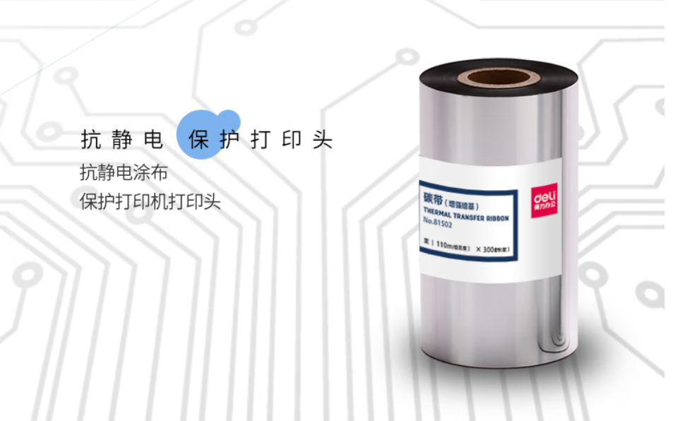 得力/deli 色带、碳带 81502 110mm*300m热转印条码打印机 标签机通用型碳带 增强蜡基碳带(单卷装)