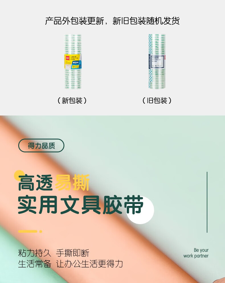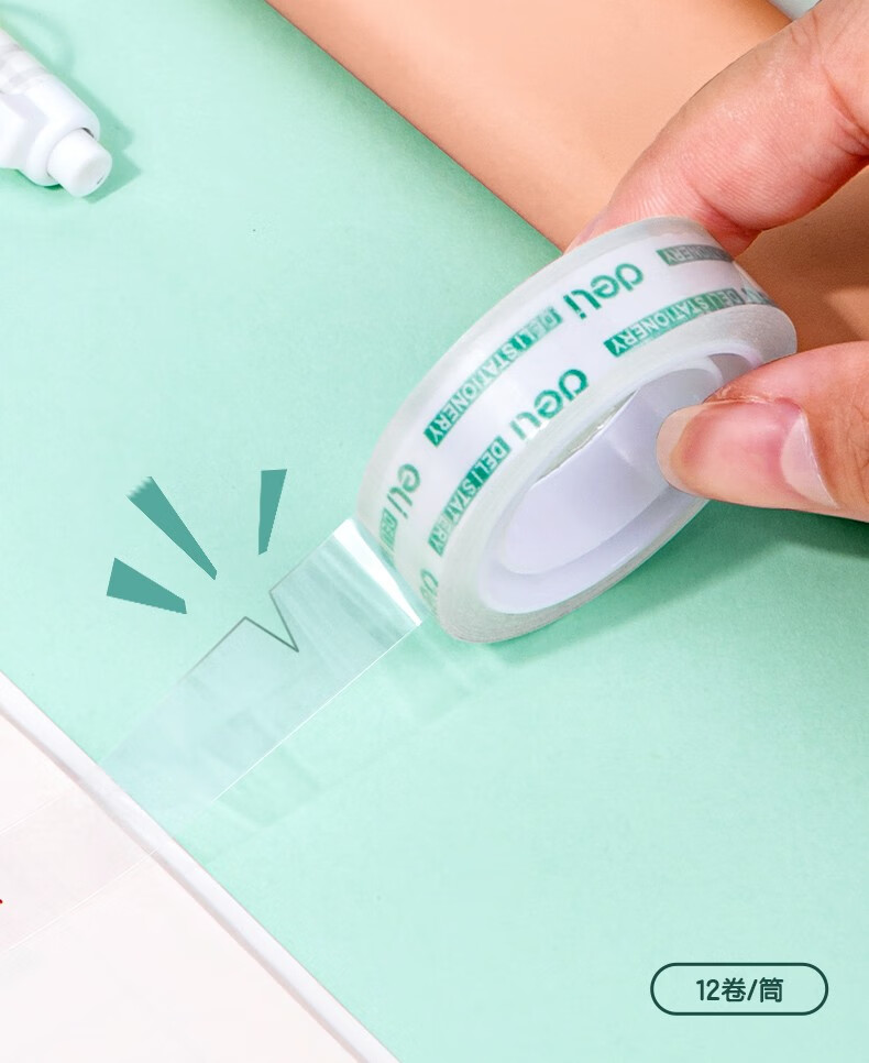 得力/deli 胶带 18mm 易撕透明胶带小卷胶条学生用宽胶纸细窄强力高粘度不留胶可粘字 宽18mm*长30y