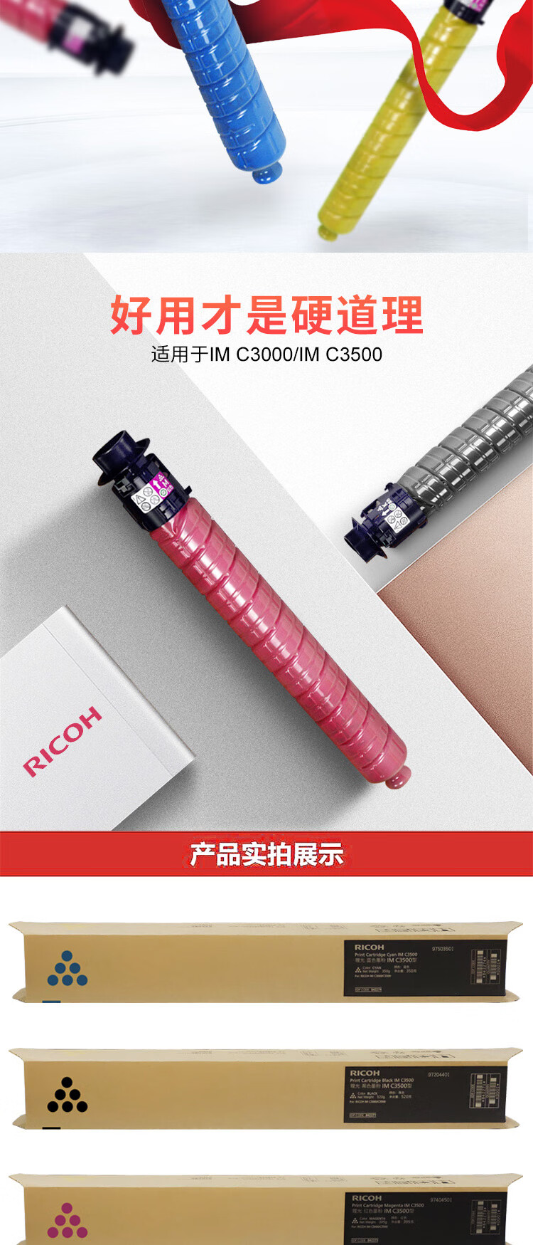 理光/RICOH 粉盒 IMC3000C 墨粉彩色原装碳粉粉盒 适用于IMC3000/IMC3500 青色粉盒(约印19000页)