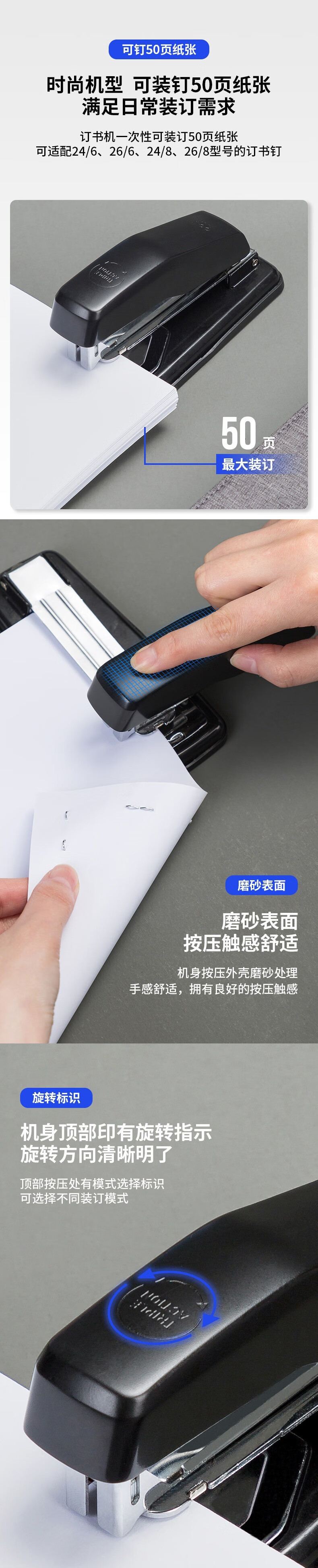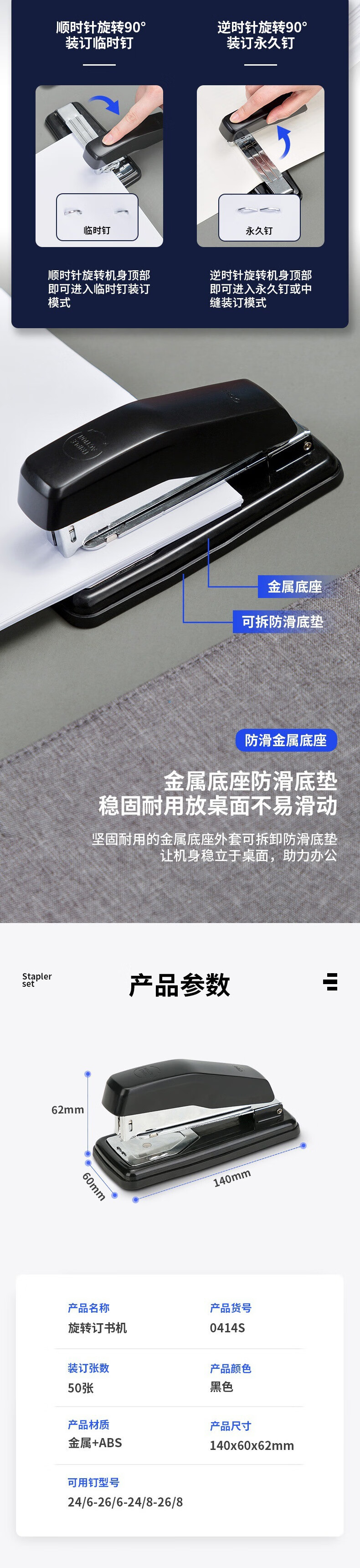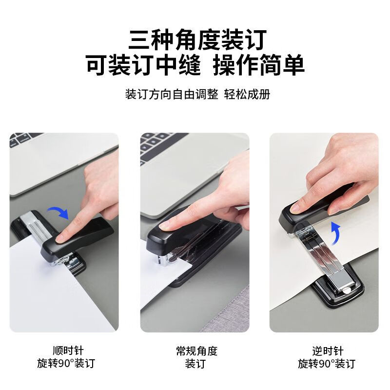 得力/deli 装订及打孔类 0414S 便携式8/24可旋转厚层50页订书器中缝骑马钉作业 订书机黑色