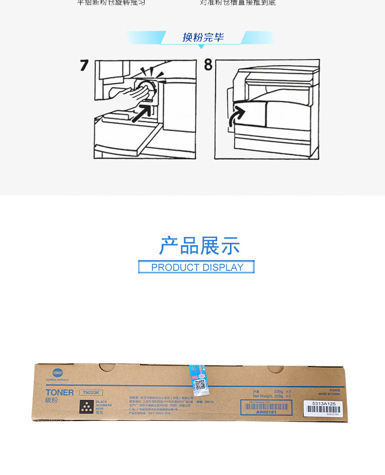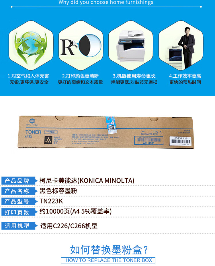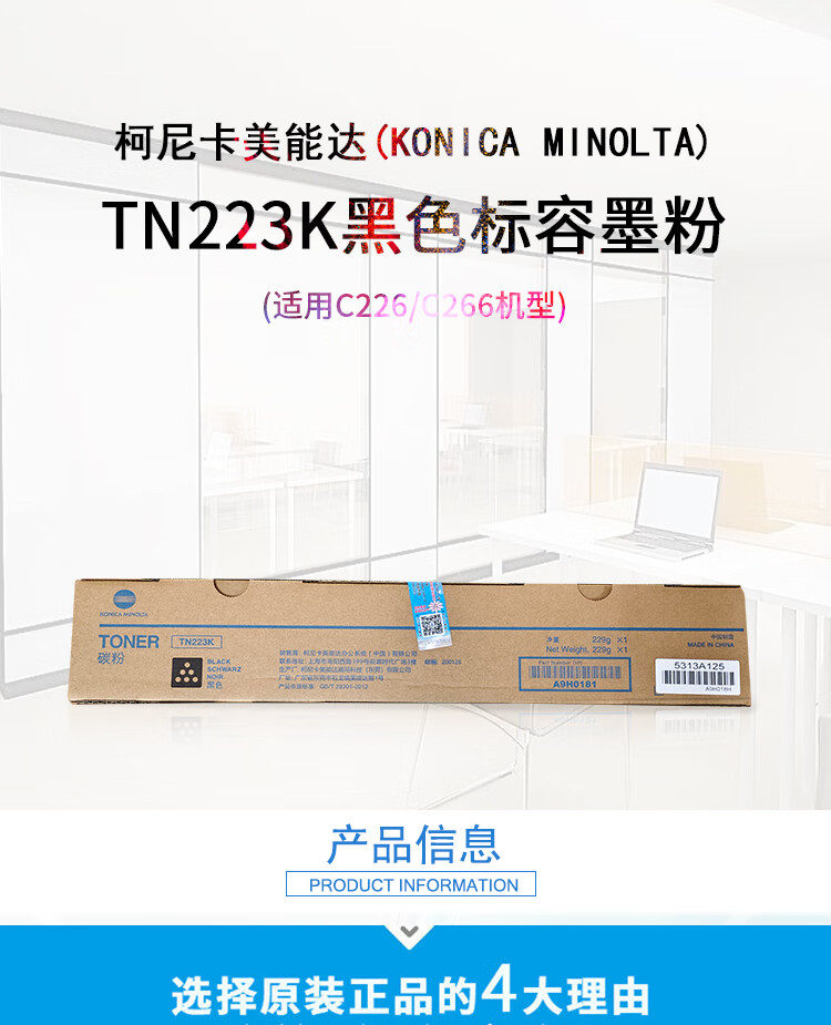 柯尼卡美能达/KONICAMINOLTA 粉盒 C226 黑色标容碳粉墨粉盒耗材适用C226打印机