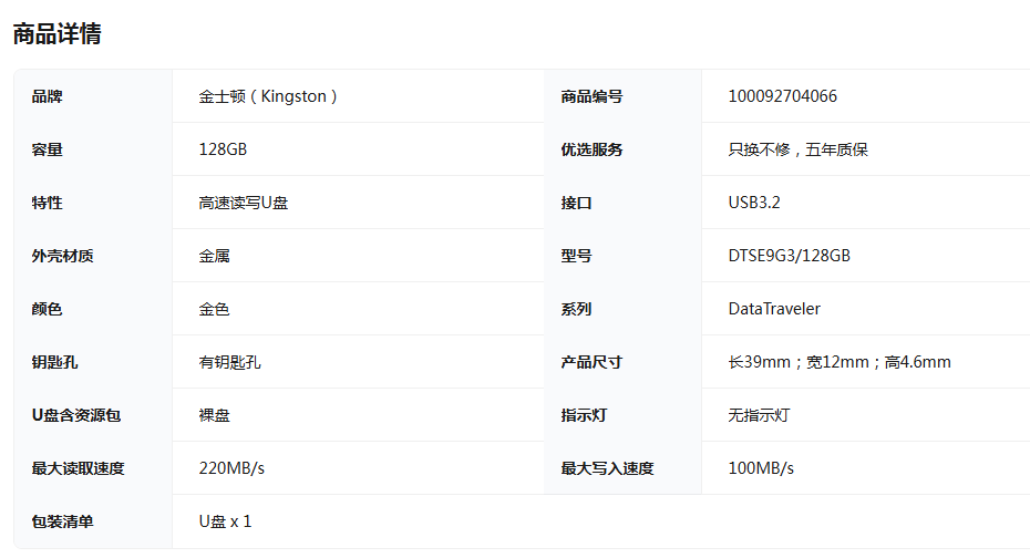 金士顿/Kingston U盘/存储卡 128GB USB 3.2 Gen 1 U盘 DTKN 大容量U盘 读速200MB/s 学习办公投标电脑车载通用