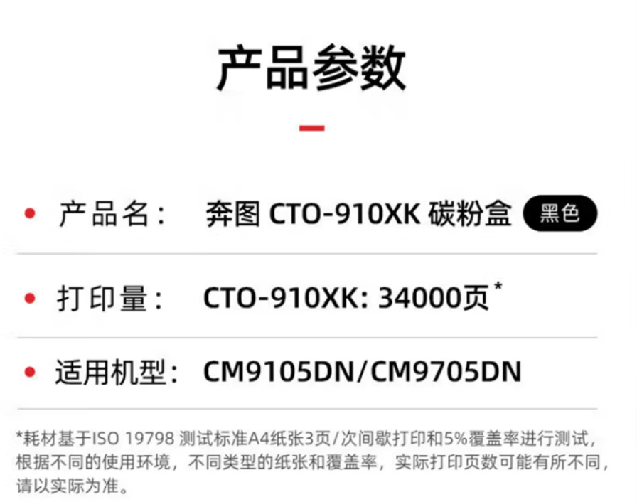 奔图/PANTUM 粉盒 CTO-910XK 黑色碳粉盒 原装耗材 适用于奔图CM9105DN/CM9705DN打印机