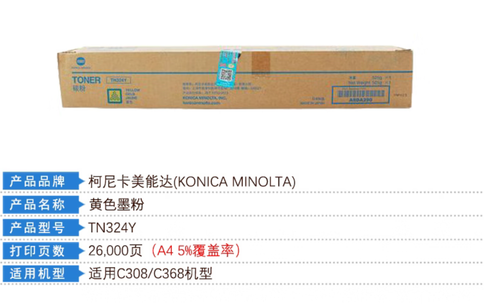 柯尼卡美能达/KONICAMINOLTA 粉盒 TN324Y 柯美碳粉黄色墨粉 (适用C308/C368机型)印量26000页