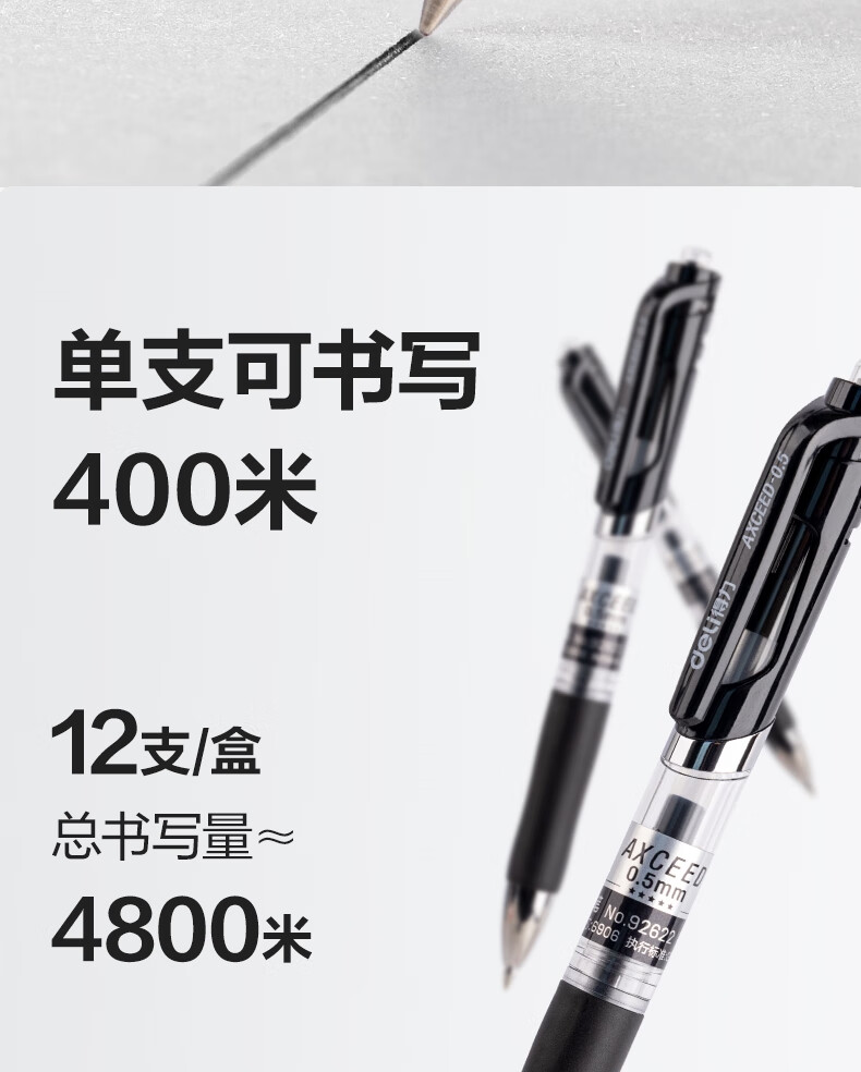 得力/deli 书写用笔类用具 S01 精英款按动中性笔签字笔 0.5mm子弹头按动笔水笔办公用品 黑色 12支/盒