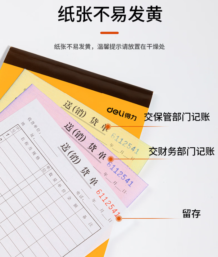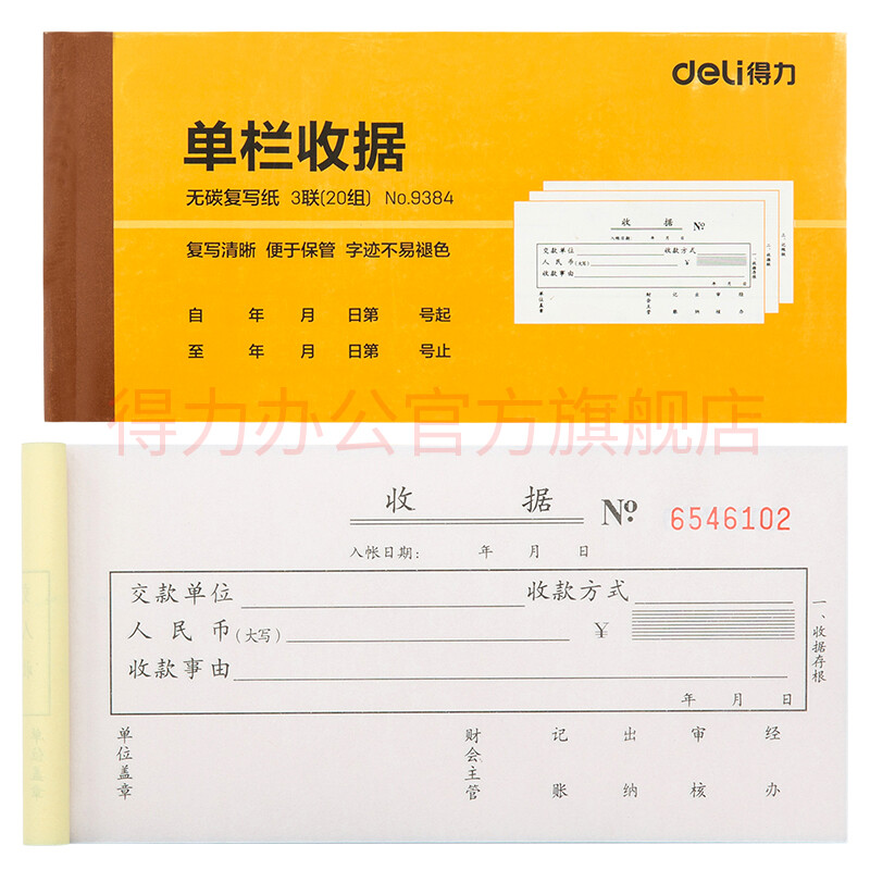 得力/deli 单据/凭证 9384 二联三联单栏多栏送货办公财务使用收据单财务单据票据 三联单栏收据单
