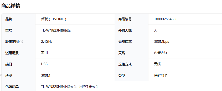 普联/TP-LINK 上网卡 TL-WN823N USB无线网卡免驱动 台式机笔记本电脑无线WiFi接收器发射器wifi 免驱版