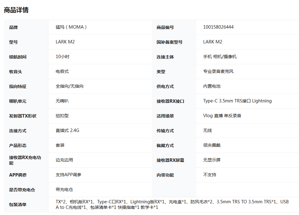 猛犸/MOMA 麦克 M2 LARK M2无线领夹麦克风 猛犸麦克风一拖二 商拍采访直播降噪mini收音麦 全家桶