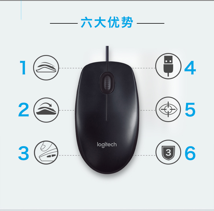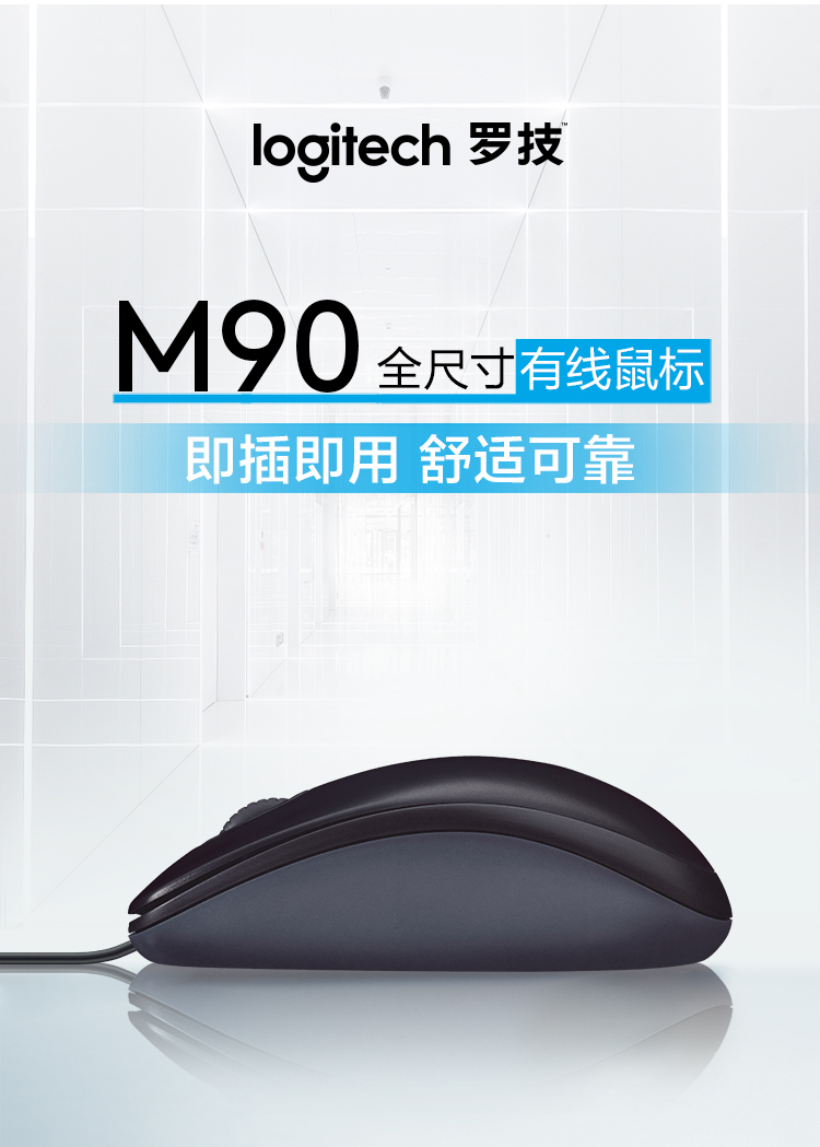 罗技/Logitech 鼠标 M90 有线鼠标 即插即用 舒适可靠 黑色