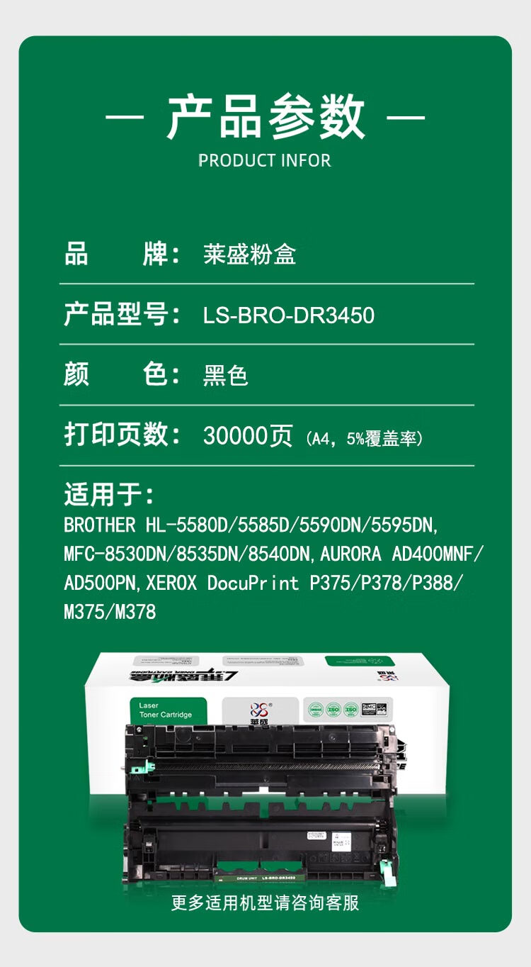 莱盛 硒鼓 LS-BRO-DR3450 鼓体单元 黑色/支适用BROTHER HL-5580D、HL-5585D硒鼓