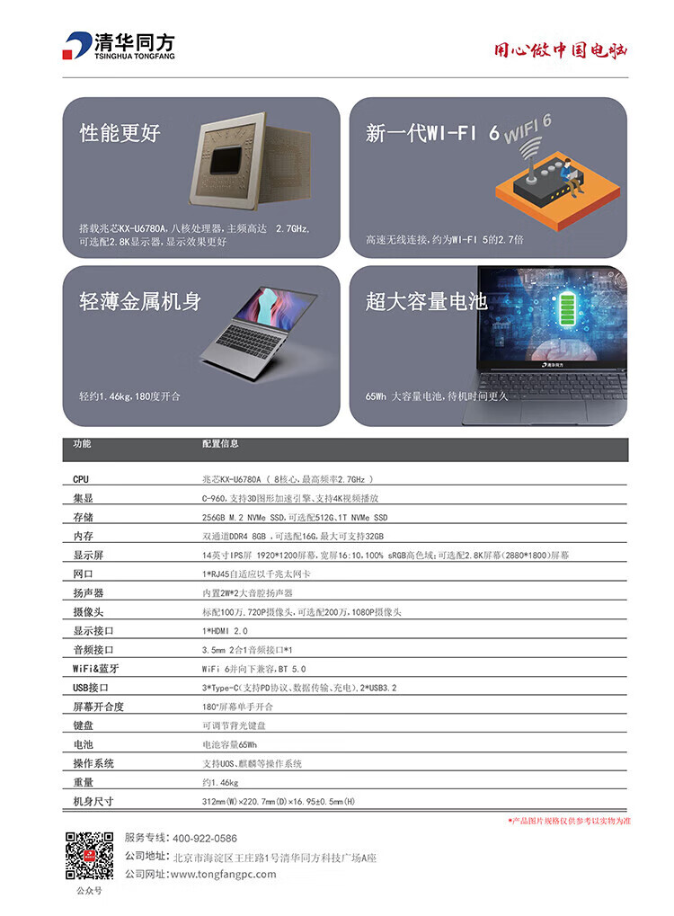 清华同方/THTF 便携式计算机 Z67 兆芯KX-U6780A处理器办公笔记本电脑台式 16GB内存丨512GB 【KOS麒麟系统】试用版