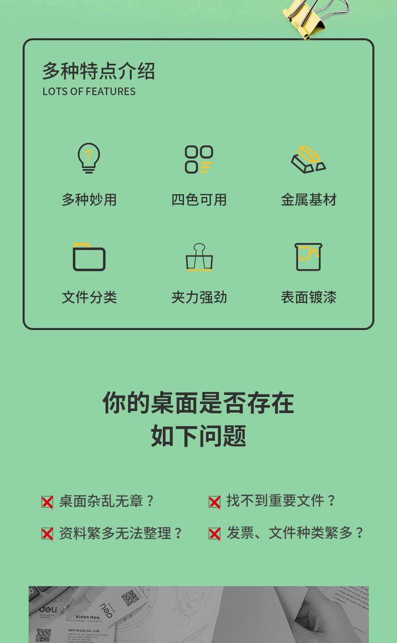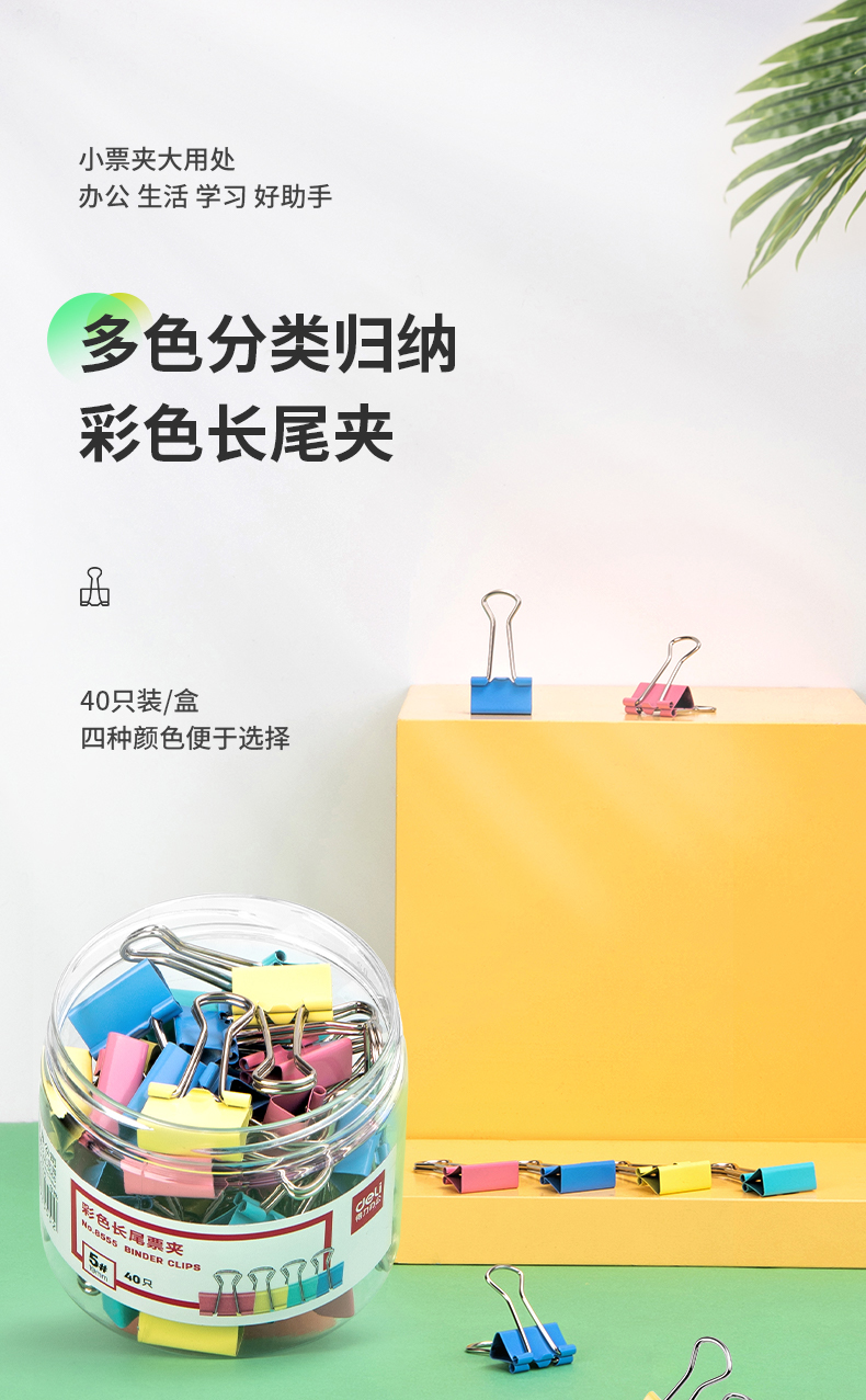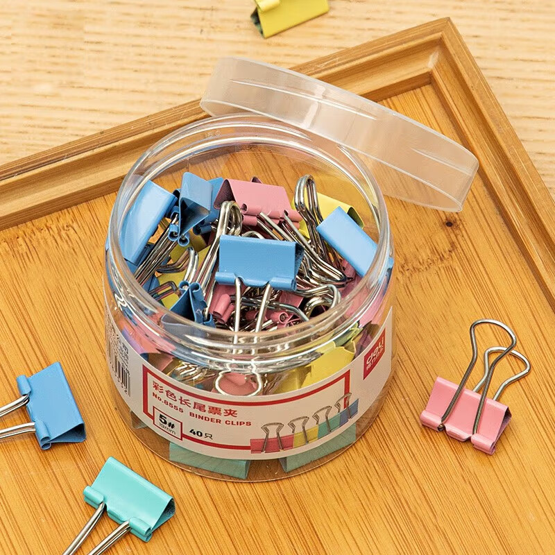 得力/deli 长尾夹 5# 19mm彩色长尾夹票夹 5#小号金属燕尾夹票据文件夹子 办公用品 40只/筒 8555
