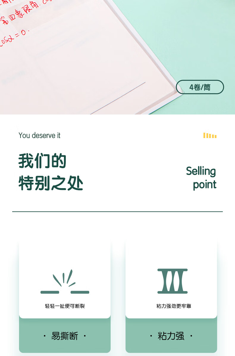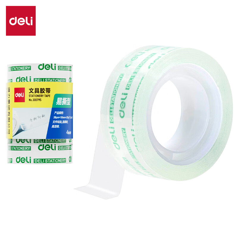 得力/deli 胶带 30079S 易撕透明胶带 18mm*20y高粘小胶带 学生文具 4卷/筒 办公用品