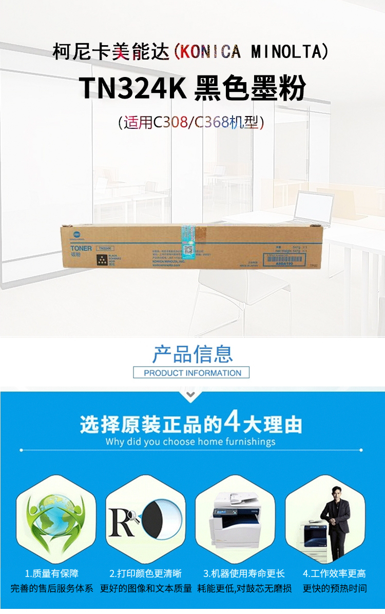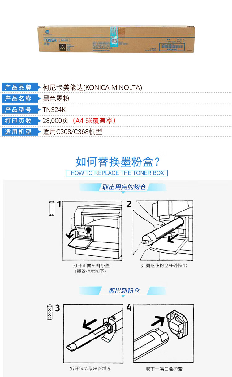 柯尼卡美能达/KONICAMINOLTA 粉盒 TN324K 28000页 墨粉 (计价单位:支)适用C308/C368机型 黑色