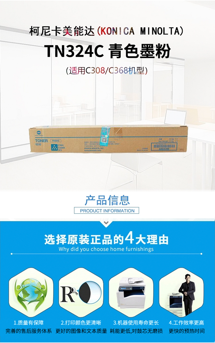 柯尼卡美能达/KONICAMINOLTA 粉盒 TN324C 柯美碳粉青色墨粉 (适用C308/C368机型) 印量26000页