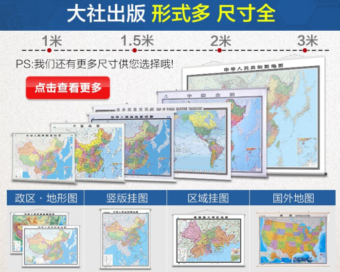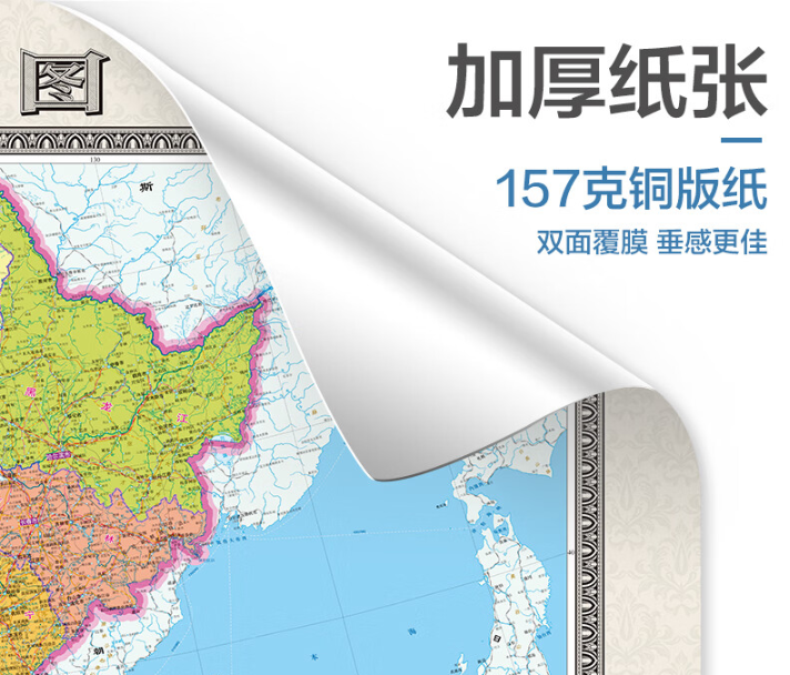 中国地图出版社 挂图 1.5m 整张无拼缝地图挂图 大尺寸约1米*1.5米 办公室书房客厅挂图