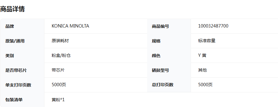 柯尼卡美能达/KONICAMINOLTA 粉盒 TN223Y 柯美碳粉盒黄色标容墨粉1支(适用C226/C266)印量5000页