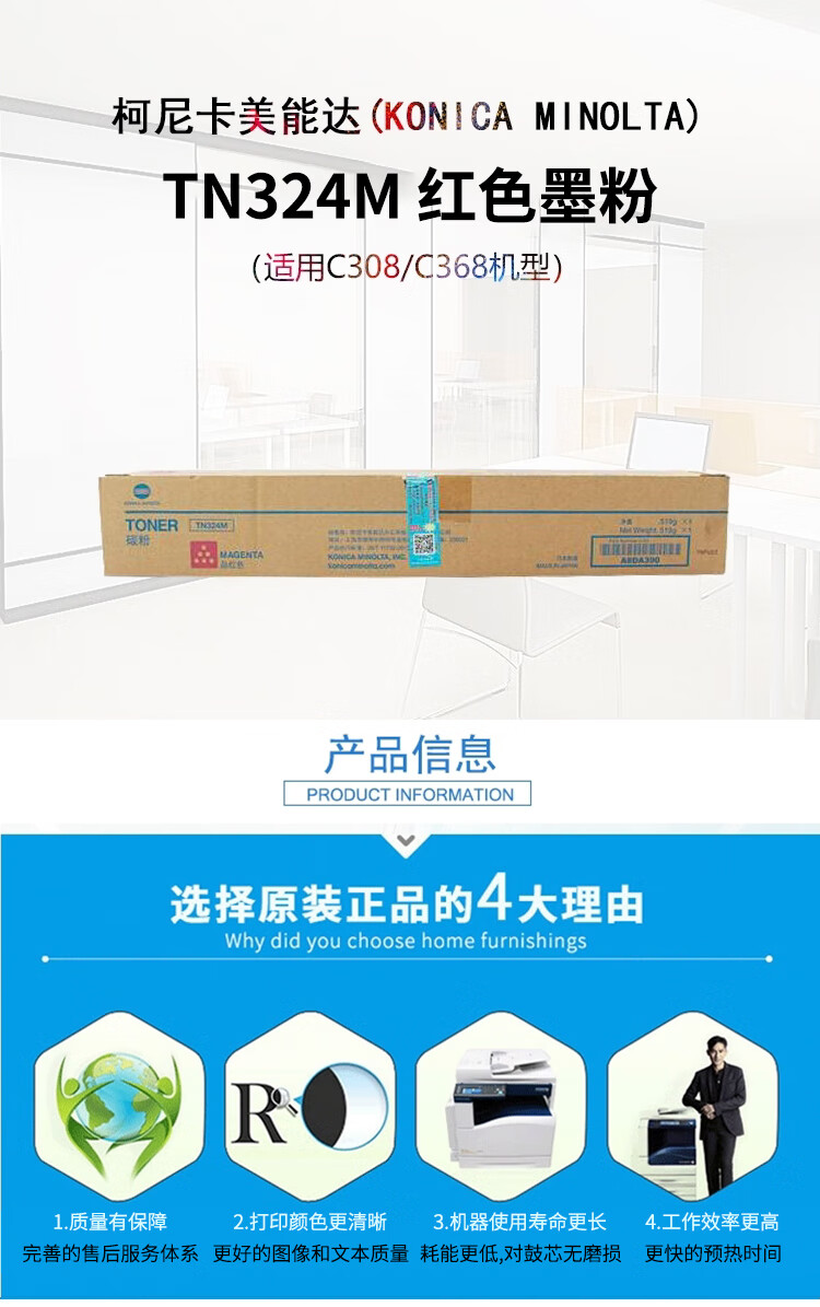 柯尼卡美能达/KONICAMINOLTA 粉盒 TN324M 26000页 墨粉 (计价单位:支) 适用C308/C368 品红色