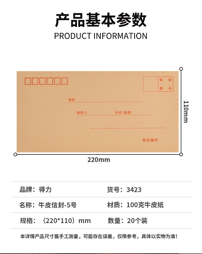 得力/deli 信封 C5 10张5号牛皮纸信封 邮局标准信封229*162mm